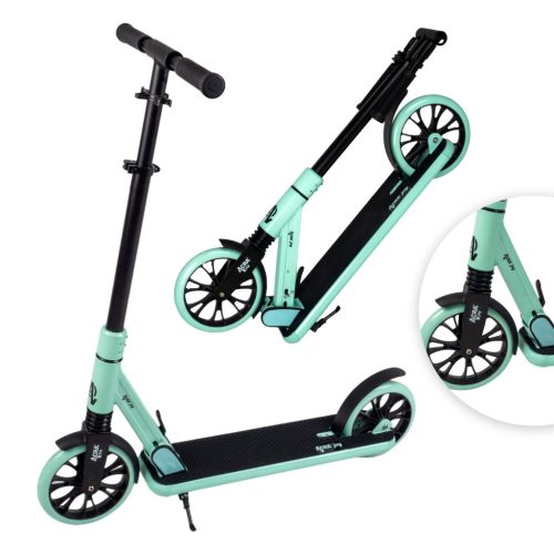 A robogó gumi kerekekkel és tömör abroncsokkal rendelkezik, amelyek átmérője 200 mm.Fel van szerelvemanuális hátsó fékkel , így a lábával a hátsó sárvédő felett fékezhet. Az összecsukható gumi markolattal ellátott kormányt kényelmes lesz tartani. Könnyedén beállíthatod őket a magasságodnak megfelelően. A robogó 9 éves kortól használható, maximum 180 cm-es magassággal.