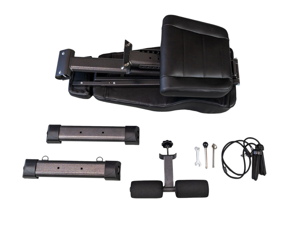 Állítható súlypad, maximális terhelhetőség 300 kg-ig, 4 ülésszint, 3 lábtámasz szint, 8 háttámla pozíció, párnázás a kényelemért, - a pad helytakarékosan összecsukható .