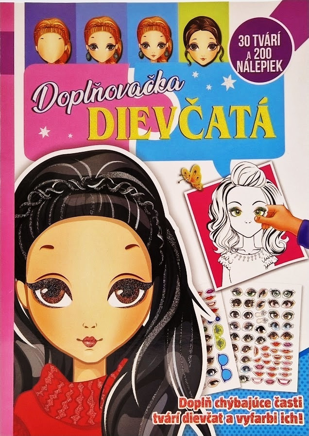 Doplň chýbajúce časti tvári dievčat a vyfarbi ich! 30 tvári a 200 nálepiek.