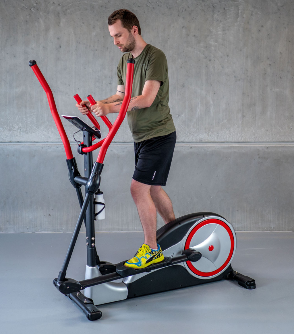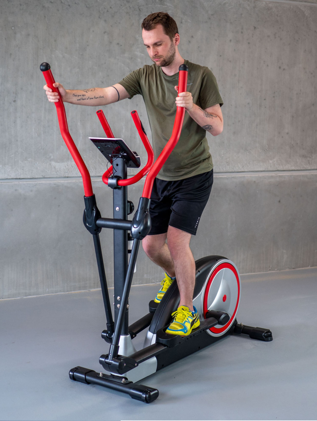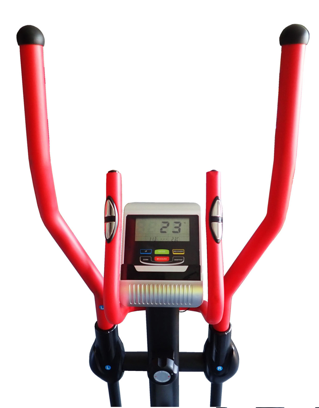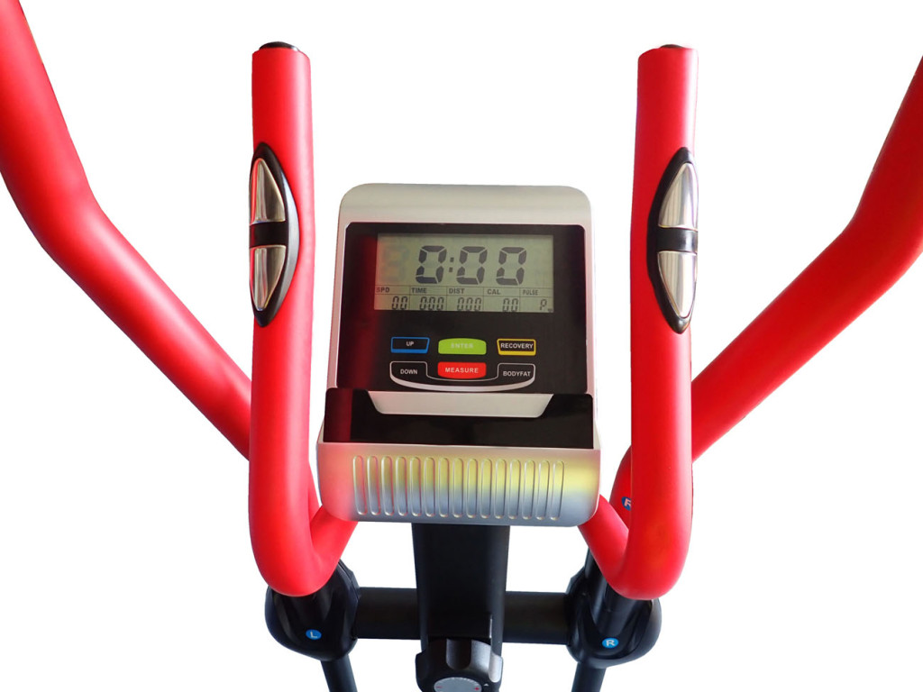 Mágneses elliptikus tréner,150 kg teherbírás, ajánlott testmagasság 200 cm-ig, 8 terhelési fokozat, 9 kg-os lendkerék,választható lépéshossz 36-42 cm, Scan funkció, idő, távolság, sebesség, fitnesz, pulzus,kalória és zsírmérés. Palack és italtartó.