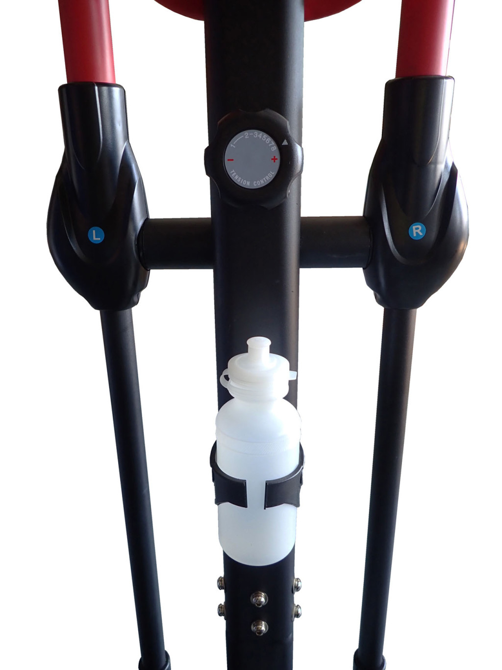 A robusztus felépítés akár 150 kg-os terhelést is elbír. Az edzőcipő alkalmas200 cm-es alakmagasságig. A központi tengely kiváló minőségű csapágygolyókra van felszerelve. A lapos szíjjal ellátott sebességváltó valóban csendes működést biztosít. A trénerhez egy italtartó is tartozik. A csomagban egy praktikus ivópalackot találsz.