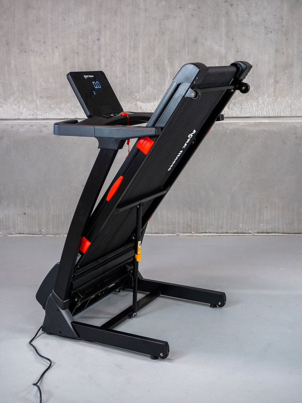 Futópad elektronikus dőlésszöggel 15%-ig, 2 HP motorteljesítmény, 15 előre beállított program, sebesség 1 és 16 km/h között, LCD kijelző, amely információkat mutat, Bluetooth kapcsolat, beépített hangszórók.