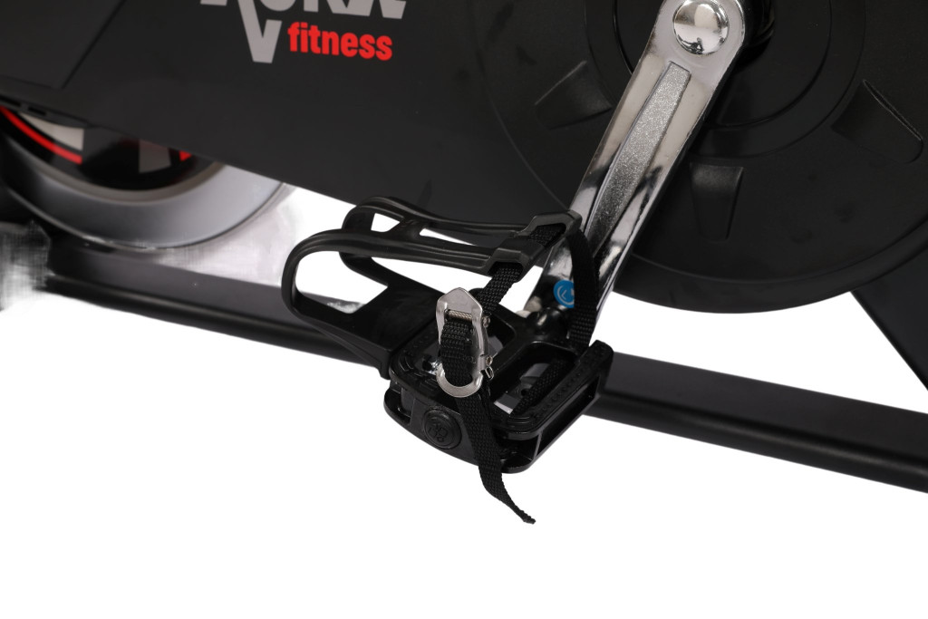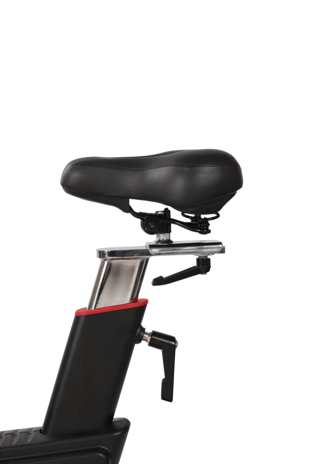 Szobakerékpár csendes és egyenletes futású, stabil felépítésű, teherbírása 150 kg-ig, gumiheveder, 15 kg-os lendkerék, állítható terhelésű mágnesfék. Számítógép LCD kijelzővel és Bluetooth sportteljesítmény megjelenítésére, italtartó.