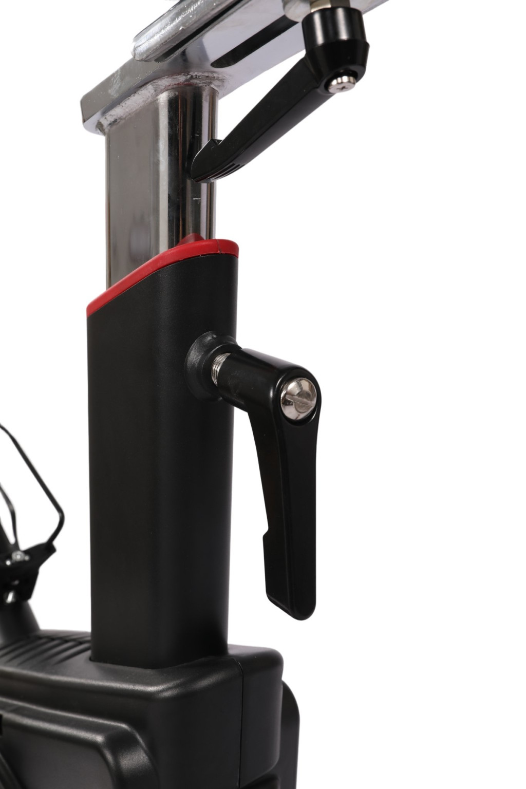 A karbantartást nem igénylő mágneses fék a terhelés folyamatos beállításának elvén működik. A terhelési rendszert mechanikusan beállíthatja, ezáltal beállíthatja az edzés intenzitását. Az ülés és a kormány pontosan úgy állítható, ahogyan szüksége van rá. A szobakerékpár ideális akár 190 cm magas sportolók számára.Annak érdekében, hogy edzés közben is hidratált maradjon, szívesen fogad egy italtartót.