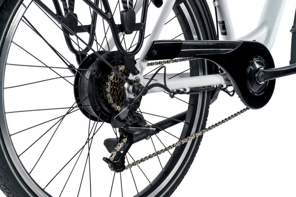 A rugós első villával és tárcsafékekkel felszerelt elektromos kerékpár rövid vagy hosszú utakra is használható. A vázba épített akkumulátor 13 Ah (468 Wh) kapacitású, nagy teljesítményű cellákkal rendelkezik. A csomagban talál egy 3 A áramerősségű töltőt, amelynek segítségével jelentősen lecsökkentheti az e-bike töltési idejét.