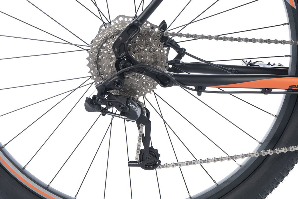 Mountain bike, váz 20„, kerékméret 29”, sebesség 8, ajánlott magasság 175-185 cm, terhelhetőség 110 kg, szín fekete-narancs.