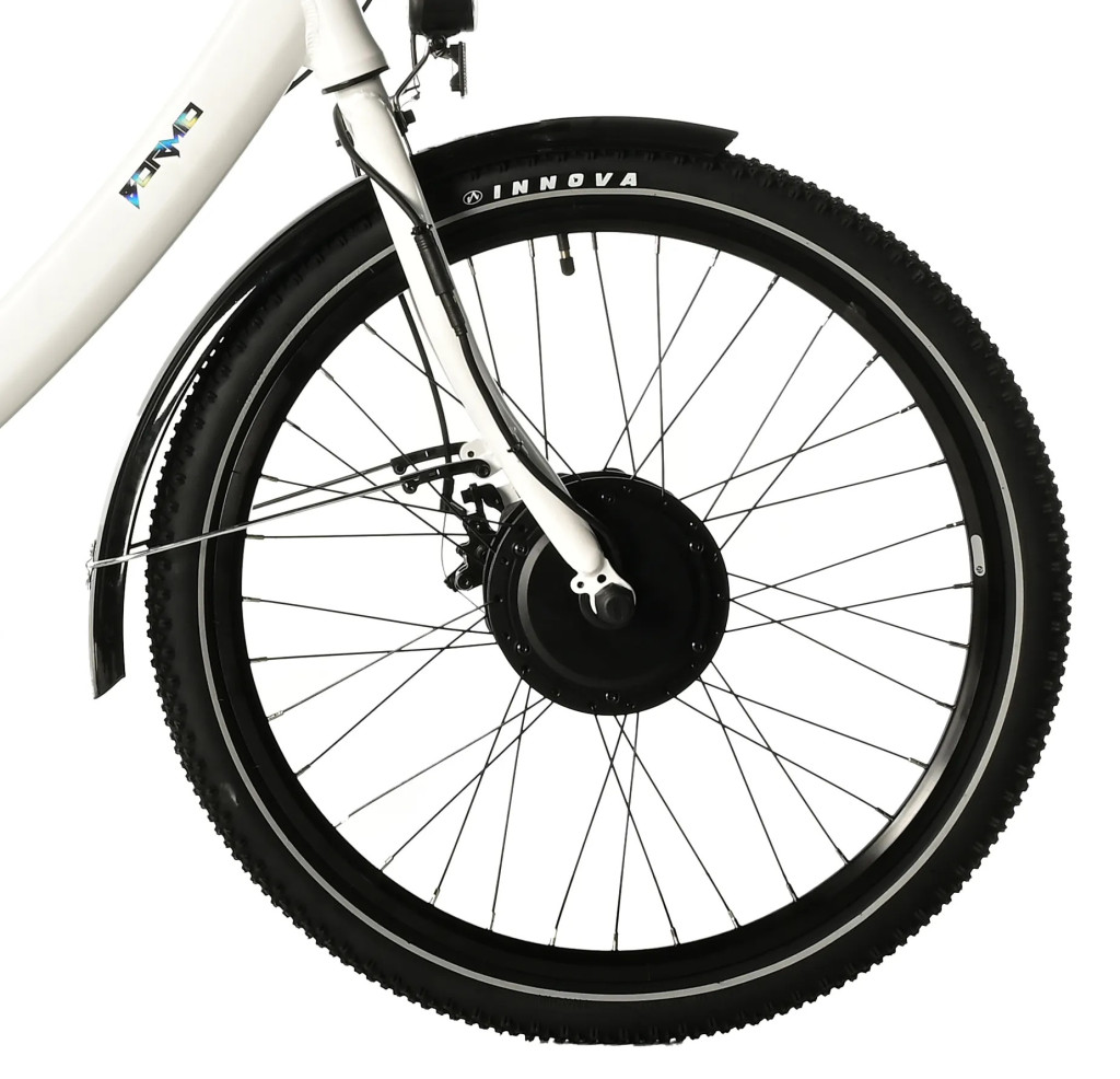 A hajtást egy BAFANG első kerékagyas motor biztosítja, amely csendes és zökkenőmentes haladást nyújt. Az LG akkumulátor 14,4 Ah (518,4 Wh) kapacitásával átlagosan akár 50 km-t, ideális körülmények között akár 70 km-t is megtehet. A 3 A-es gyorstöltő jelentősen lerövidíti a töltési időt.