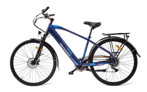 Férfi városi e-bike, 36 V-os Li-Ion akkumulátor 13 Wh kapacitással = 100 km hatótávolság, 250 W-os motor 30 Nm nyomatékkal, maximális sebesség 25 km/h-ig, nagy teherbírás 100 kg, tárcsafékek. Alumínium ötvözet + rozsdamentes acél. Kék, türkizkék és fehér.
