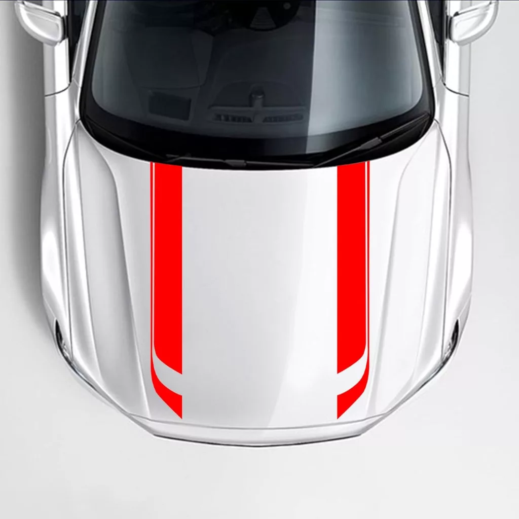 2 db-os öntapadós Tuning matrica szett, "Hood Stripes V1" modell, 85 x 12 cm méret, piros szín