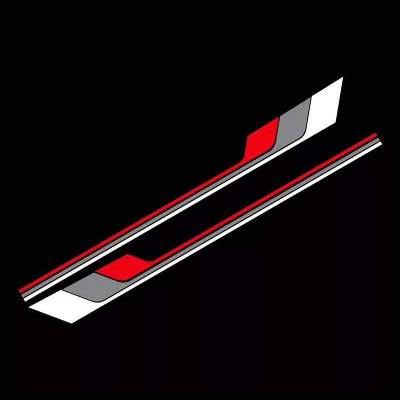 2 db-os öntapadós Tuning matrica szett, "Racing Stripes V2" modell, 180 x 16,5 cm méret, fehér + szürke + piros szín