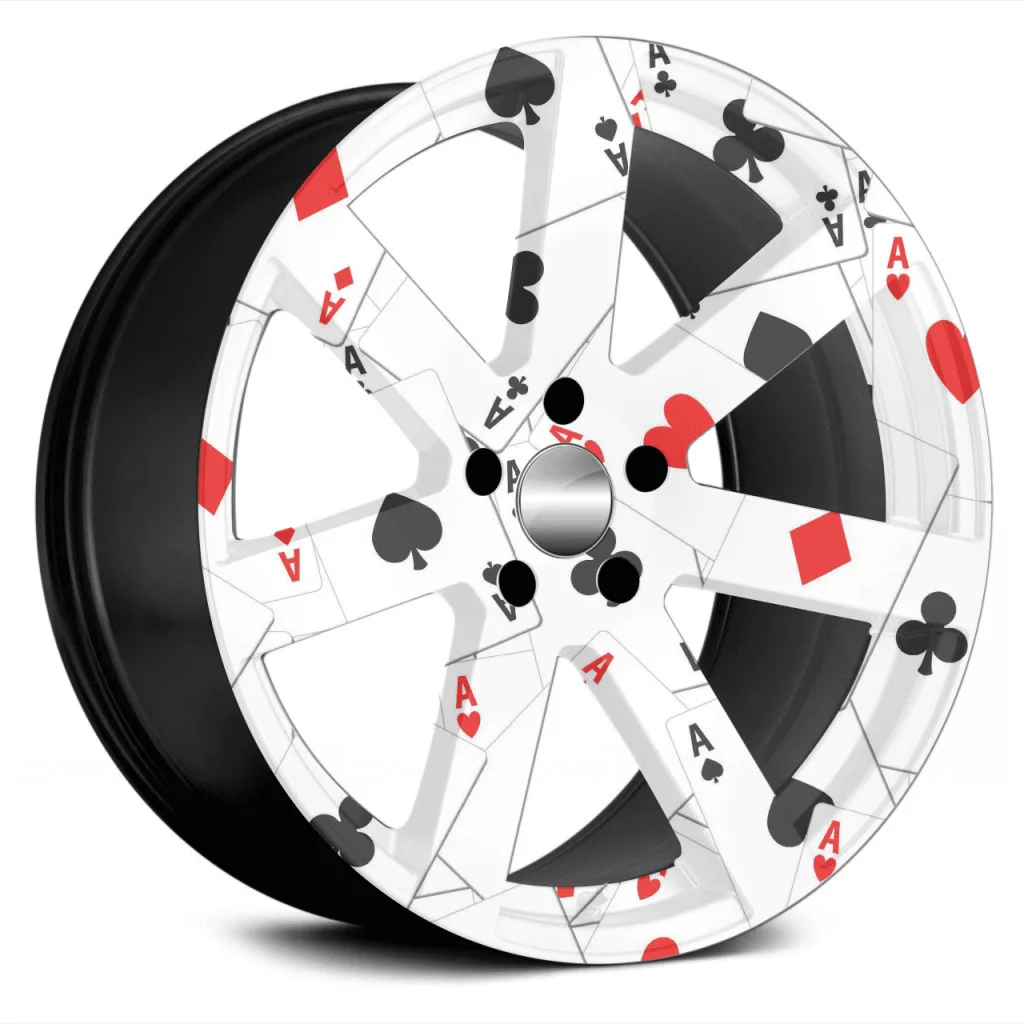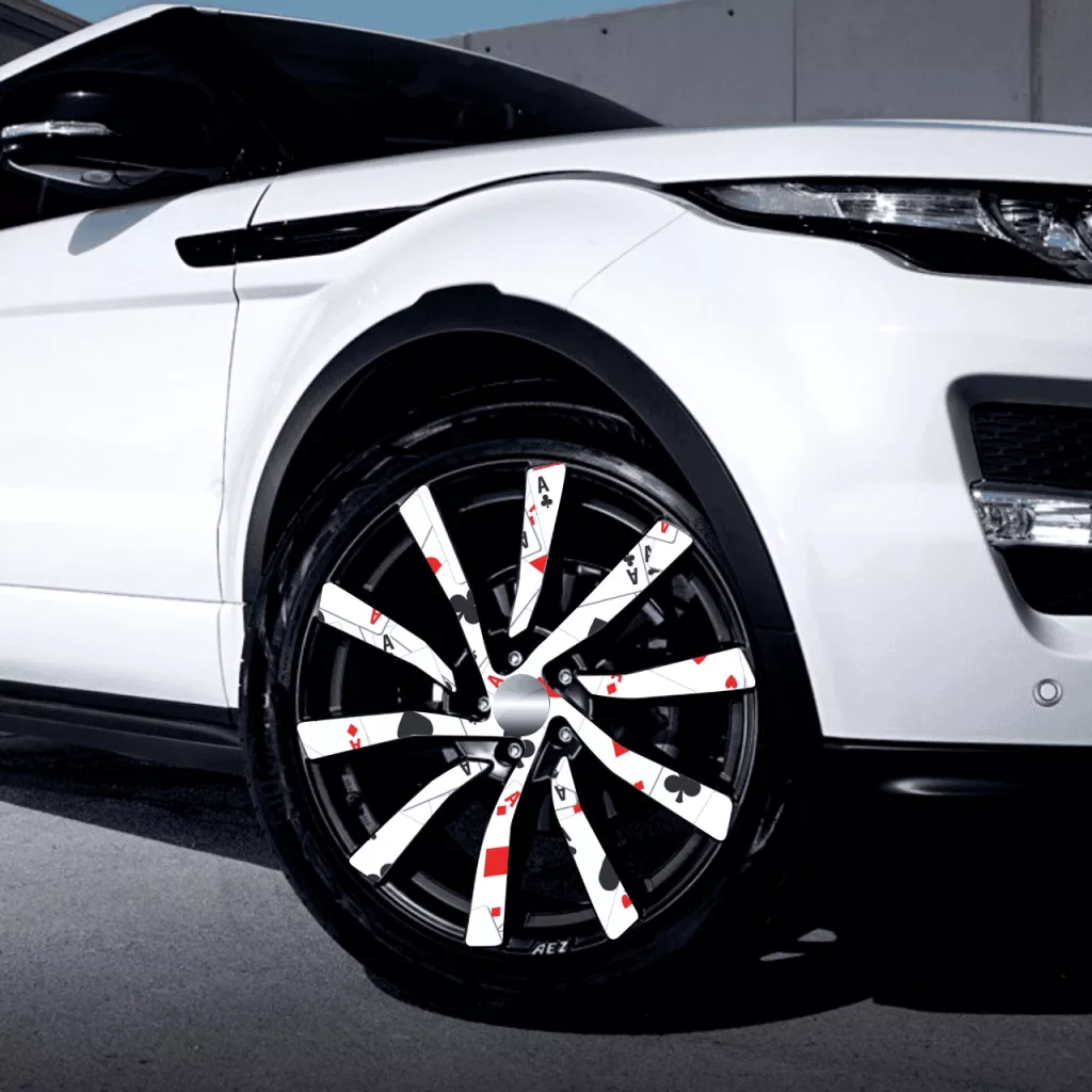 Autófólia készlet felnicsomagoláshoz, kiváló minőségű, kültéri oldószerekkel nyomtatott termék, tartós kültéri használatra, tuningrajongóknak, autóversenyeknek, autókiállításoknak ajánljuk. A termék mérete (Ø 60 cm) elegendő akár 21"-es felnik ragasztásához.