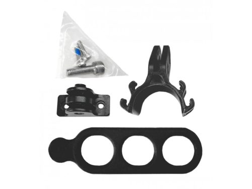 Praktikus tartó kültéri fényképezőgéphez vagy zseblámpához, egyszerűen a kormányra szerelhető. Kompakt kialakítás. Fekete színű.