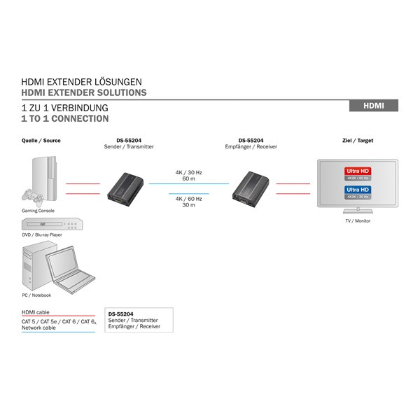 DIGITUS DS-55204 4K HDMI 30/60m 4K extender szett