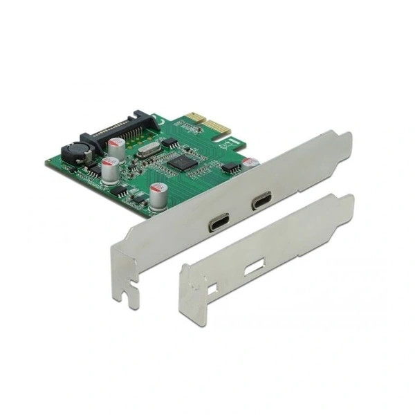Ez a Delock PCI Express-kártya két külső USB-C -es porttal bővíti ki a számítógépét. Igény szerint USB-vel kompatibilis különféle eszközöket, például dokkolóállomásokat, kártyaolvasókat, külső házakat stb. csatlakoztathat a kártyához.