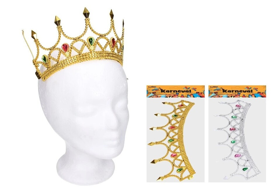 Korona mérete 15x8 cm, 2 színben: arany, ezüst.