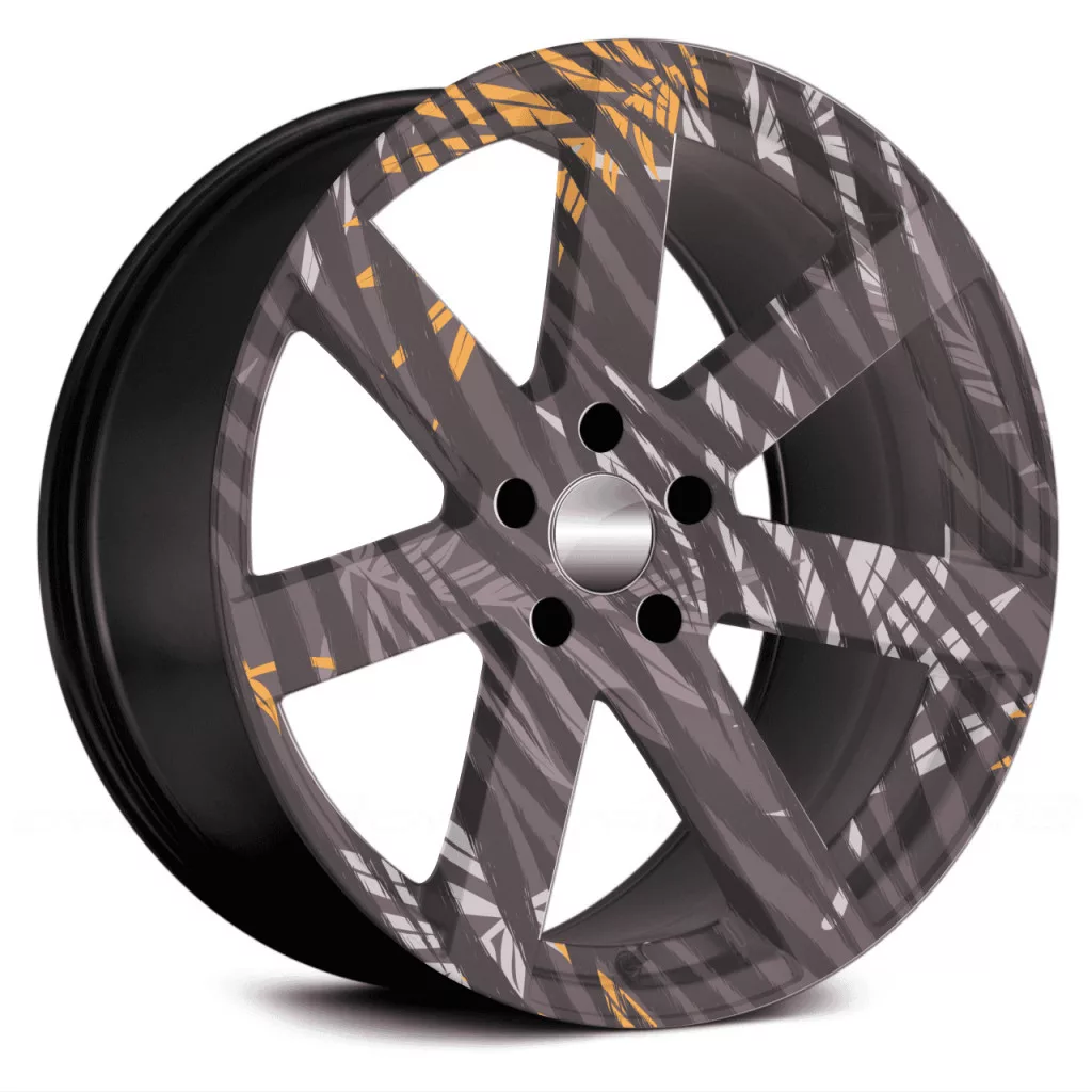 Autófólia készlet felnicsomagoláshoz, kiváló minőségű, kültéri oldószerekkel nyomtatott termék, tartós kültéri használatra, tuningrajongóknak, autóversenyeknek, autókiállításoknak ajánljuk. A termék mérete (Ø 60 cm) elegendő akár 21"-es felnik ragasztásához.