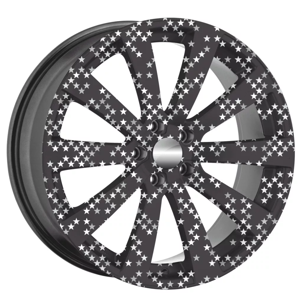 Autófólia készlet felnicsomagoláshoz, kiváló minőségű, kültéri oldószerekkel nyomtatott termék, tartós kültéri használatra, tuningrajongóknak, autóversenyeknek, autókiállításoknak ajánljuk. A termék mérete (Ø 60 cm) elegendő akár 21"-es felnik ragasztásához.
