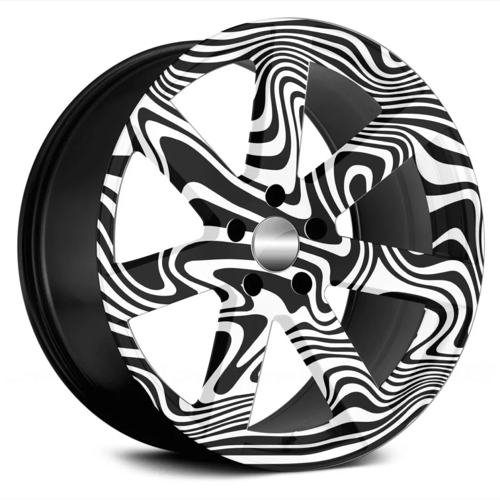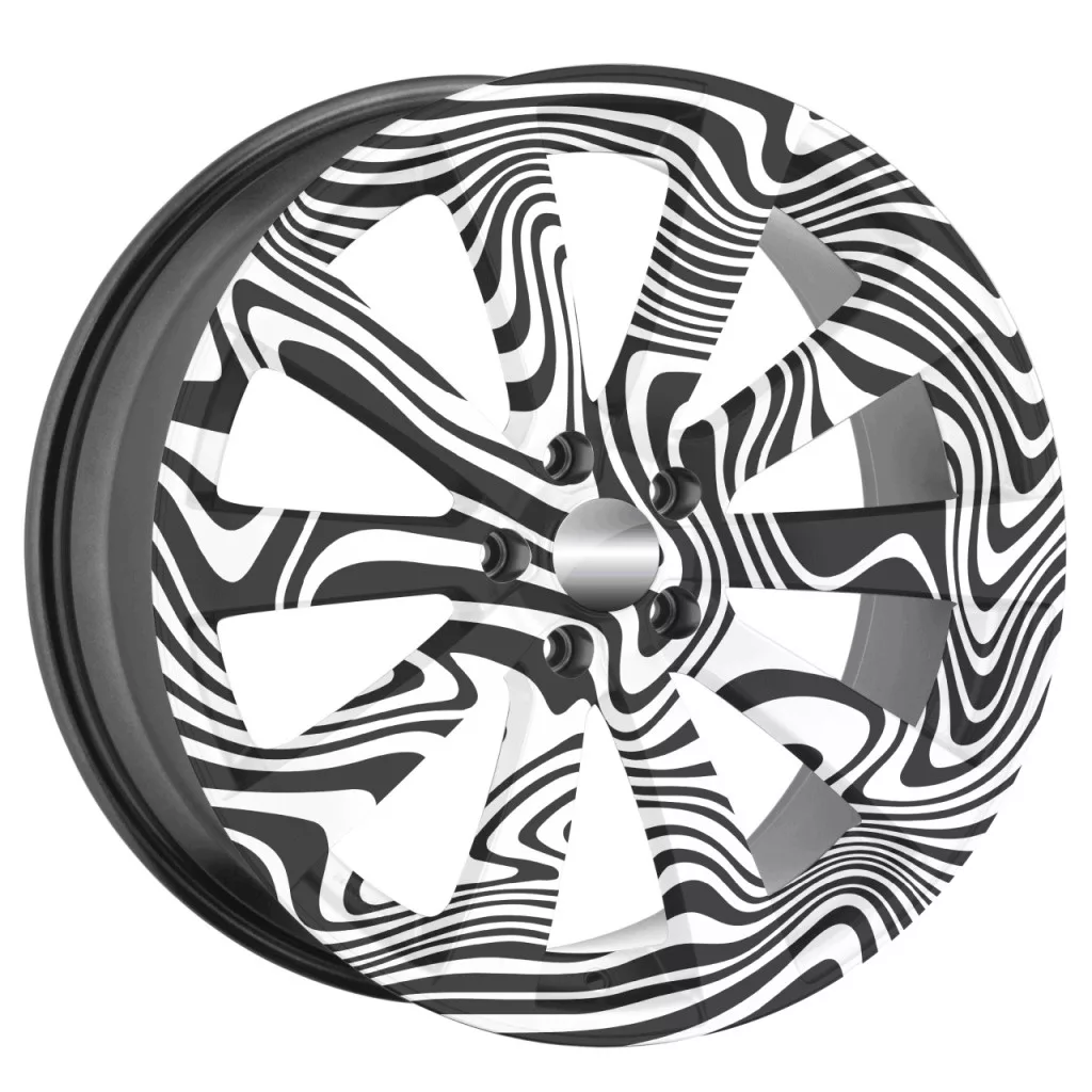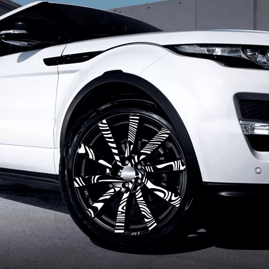 Autófólia készlet felnicsomagoláshoz, kiváló minőségű, kültéri oldószerekkel nyomtatott termék, tartós kültéri használatra, tuningrajongóknak, autóversenyeknek, autókiállításoknak ajánljuk. A termék mérete (Ø 60 cm) elegendő akár 21"-es felnik ragasztásához.