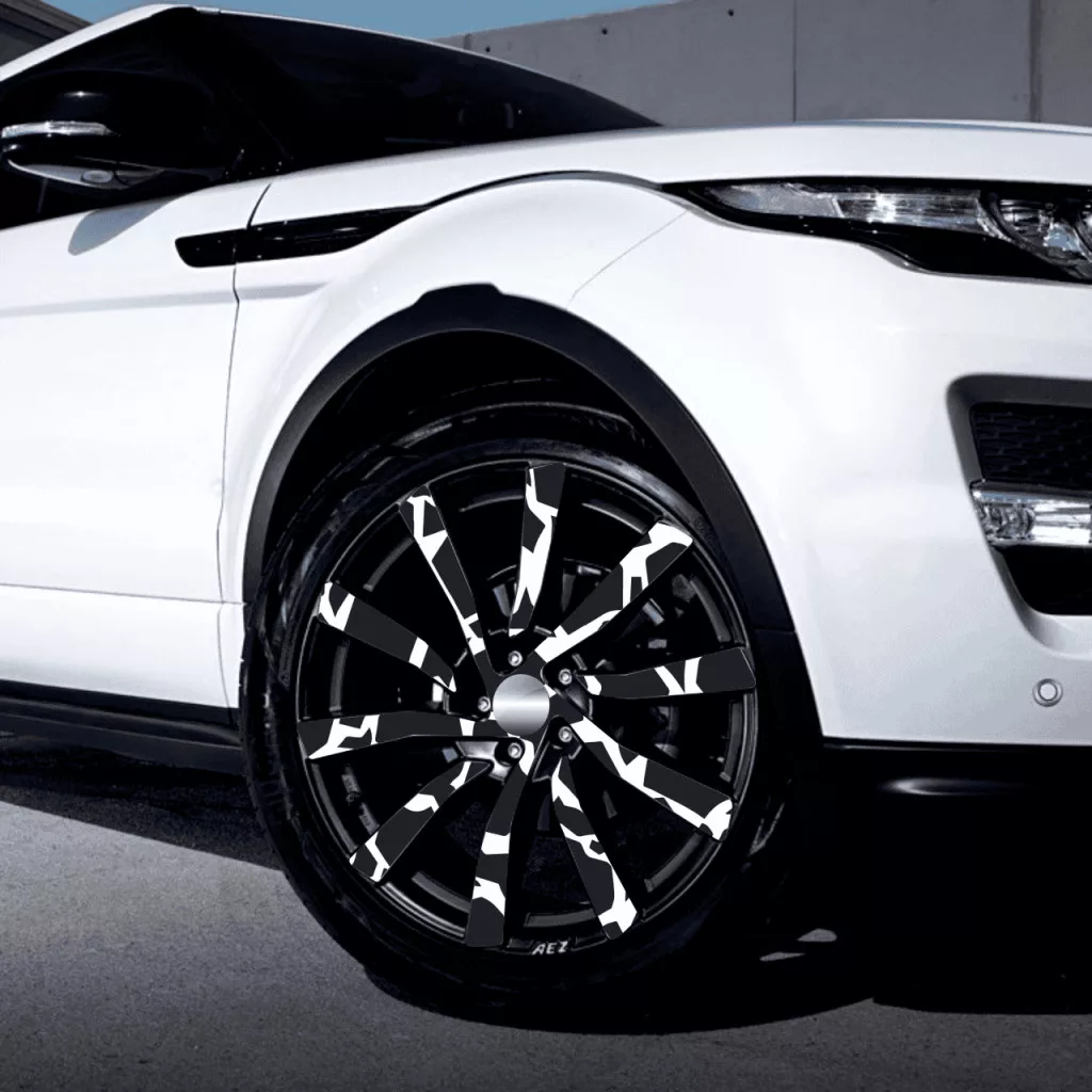 Autófólia készlet felnicsomagoláshoz, kiváló minőségű, kültéri oldószerekkel nyomtatott termék, tartós kültéri használatra, tuningrajongóknak, autóversenyeknek, autókiállításoknak ajánljuk. A termék mérete (Ø 60 cm) elegendő akár 21"-es felnik ragasztásához.