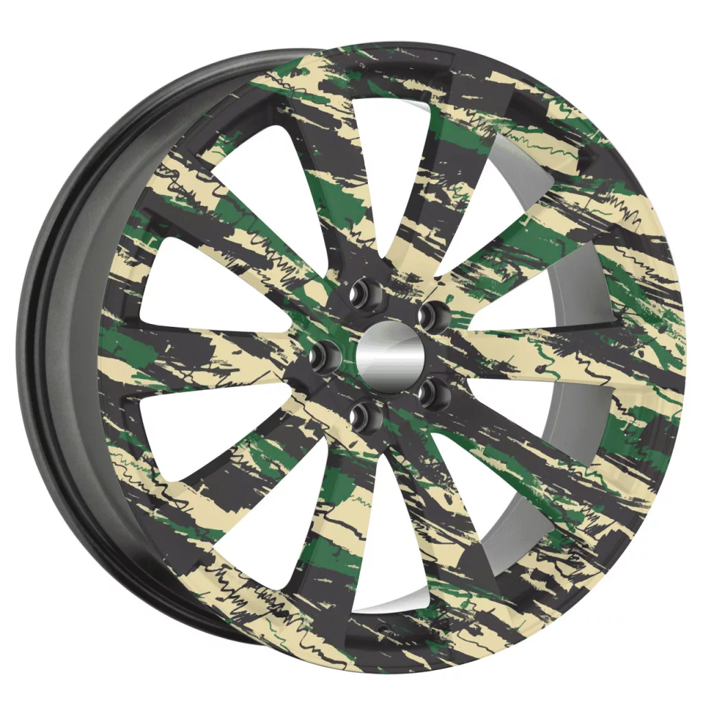 Autófólia készlet felnicsomagoláshoz, kiváló minőségű, kültéri oldószerekkel nyomtatott termék, tartós kültéri használatra, tuningrajongóknak, autóversenyeknek, autókiállításoknak ajánljuk. A termék mérete (Ø 60 cm) elegendő akár 21"-es felnik ragasztásához.