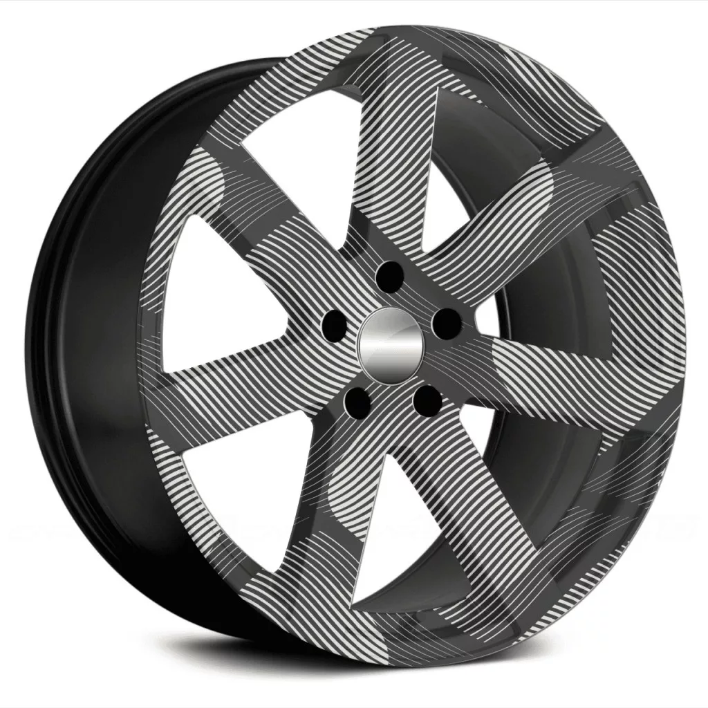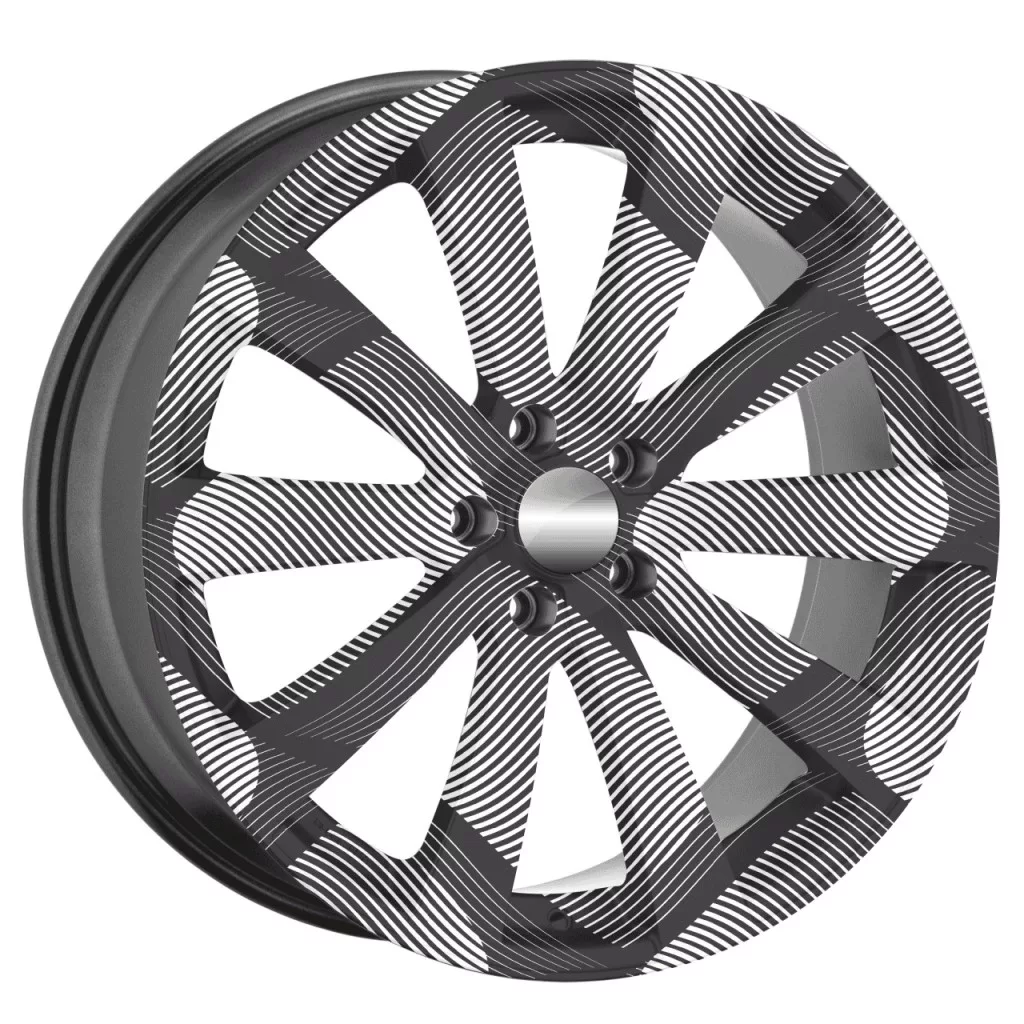 Autófólia készlet felnicsomagoláshoz, kiváló minőségű, kültéri oldószerekkel nyomtatott termék, tartós kültéri használatra, tuningrajongóknak, autóversenyeknek, autókiállításoknak ajánljuk. A termék mérete (Ø 60 cm) elegendő akár 21"-es felnik ragasztásához.