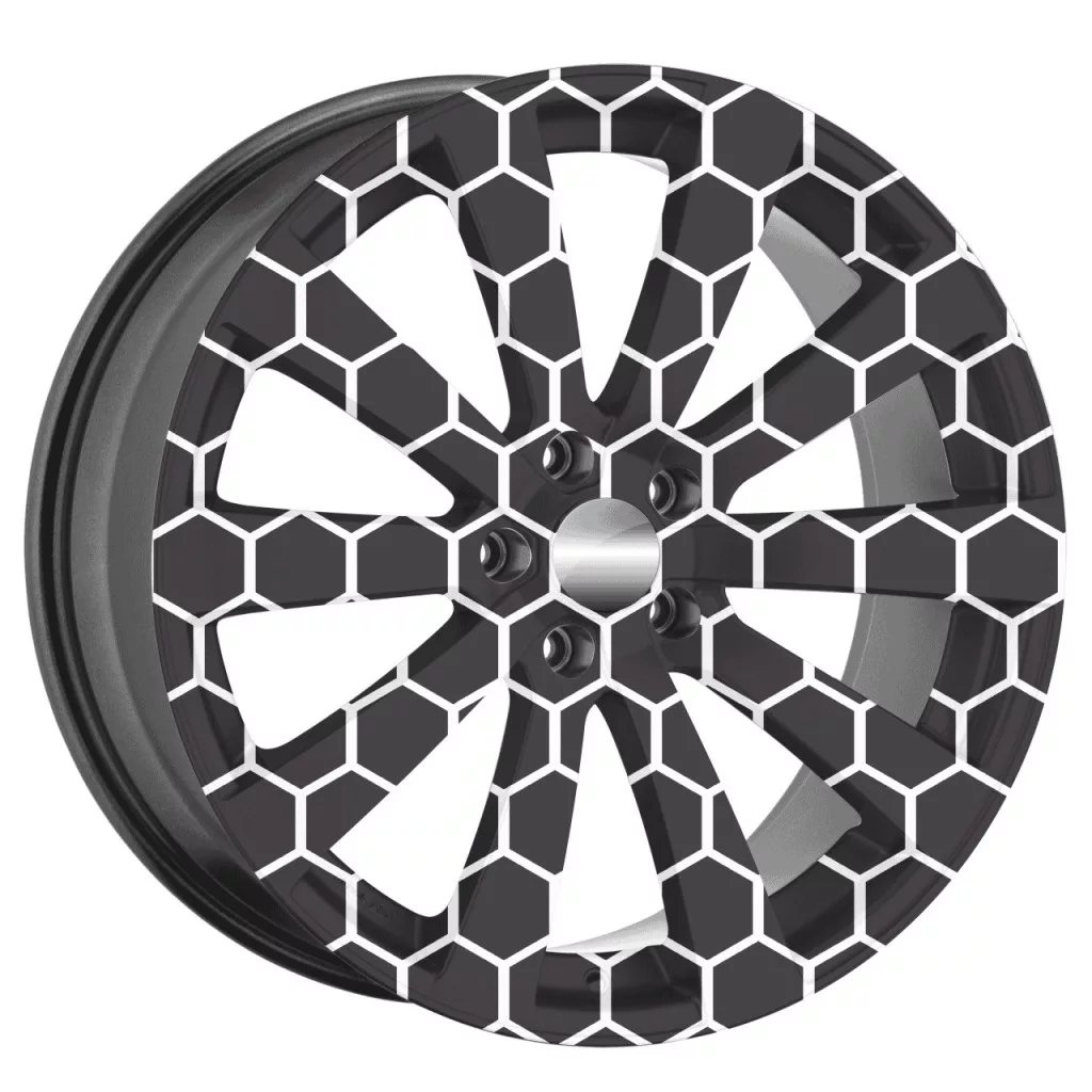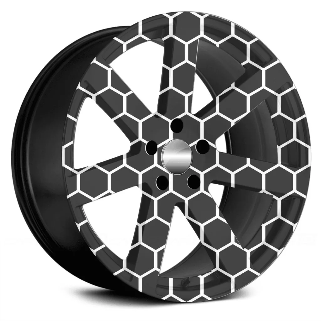 Autófólia készlet felnicsomagoláshoz, kiváló minőségű, kültéri oldószerekkel nyomtatott termék, tartós kültéri használatra, tuningrajongóknak, autóversenyeknek, autókiállításoknak ajánljuk. A termék mérete (Ø 60 cm) elegendő akár 21"-es felnik ragasztásához.