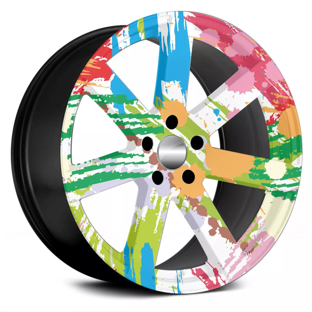 Autófólia készlet felnicsomagoláshoz, kiváló minőségű, kültéri oldószerekkel nyomtatott termék, tartós kültéri használatra, tuningrajongóknak, autóversenyeknek, autókiállításoknak ajánljuk. A termék mérete (Ø 60 cm) elegendő akár 21"-es felnik ragasztásához.