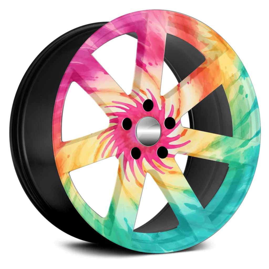 Autófólia készlet felnicsomagoláshoz, kiváló minőségű, kültéri oldószerekkel nyomtatott termék, tartós kültéri használatra, tuningrajongóknak, autóversenyeknek, autókiállításoknak ajánljuk. A termék mérete (Ø 60 cm) elegendő akár 21"-es felnik ragasztásához.