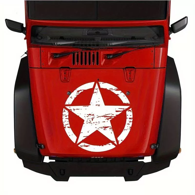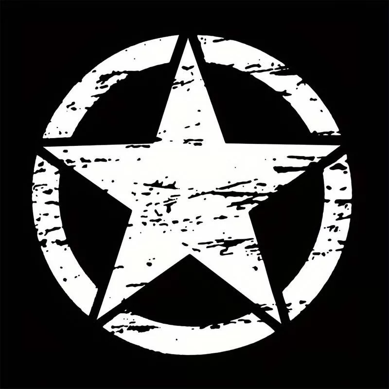 Öntapadós matrica terepjárókhoz, "Rozsdás hadseregcsillag" modell, 50 x 50 cm méret, fehér szín