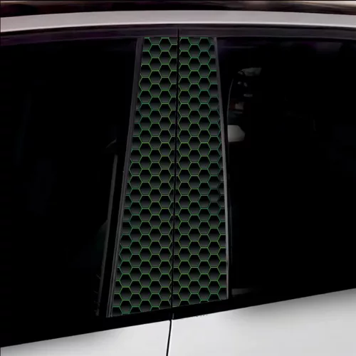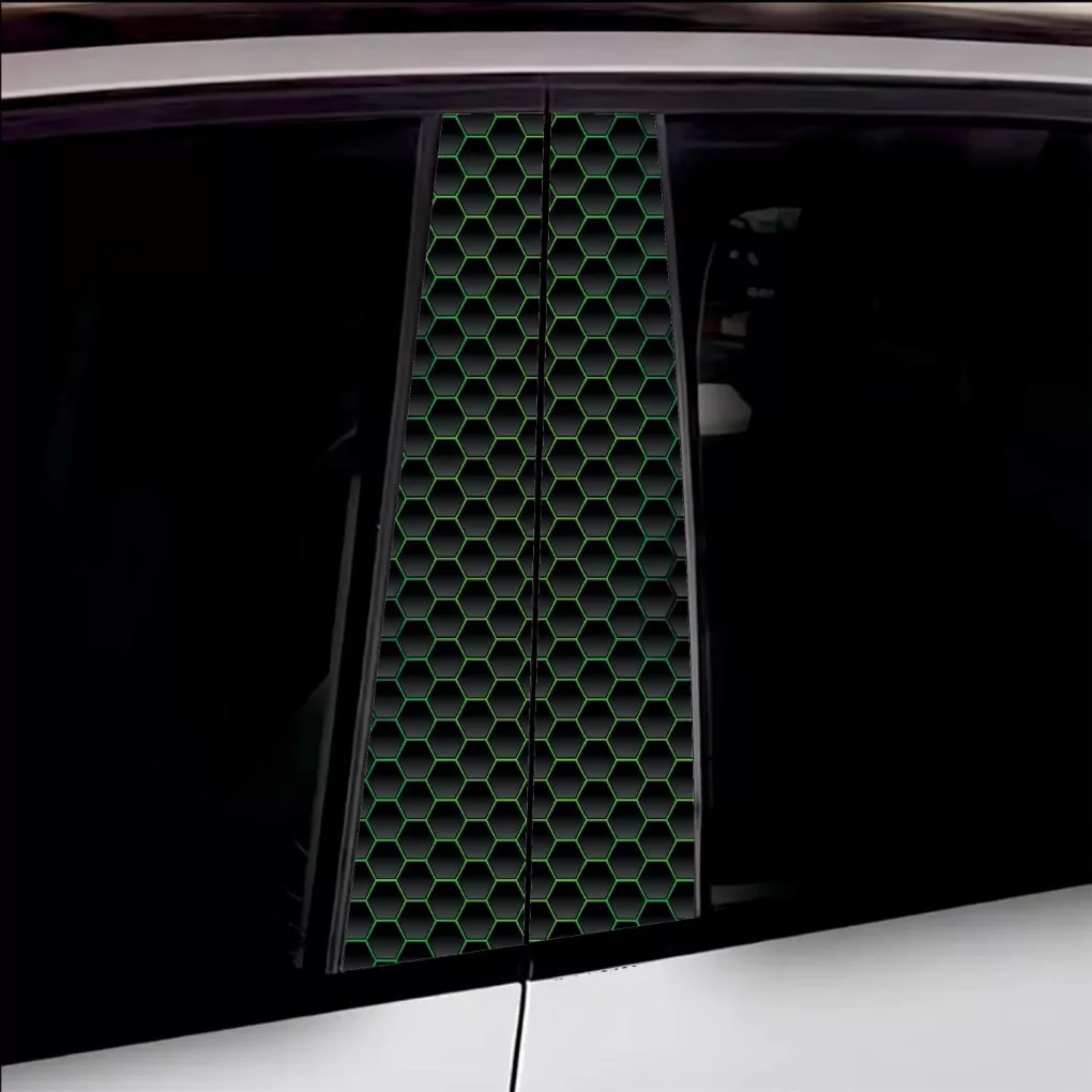2 db kültéri nyomtatott fólia készlet autó ajtóoszlopainak ragasztásához. Az EcoSolvent Outdoorral nyomtatott fólia bármilyen sík, sima felületre tapad. Durva felületek esetén a termék tapadása jelentősen csökken.