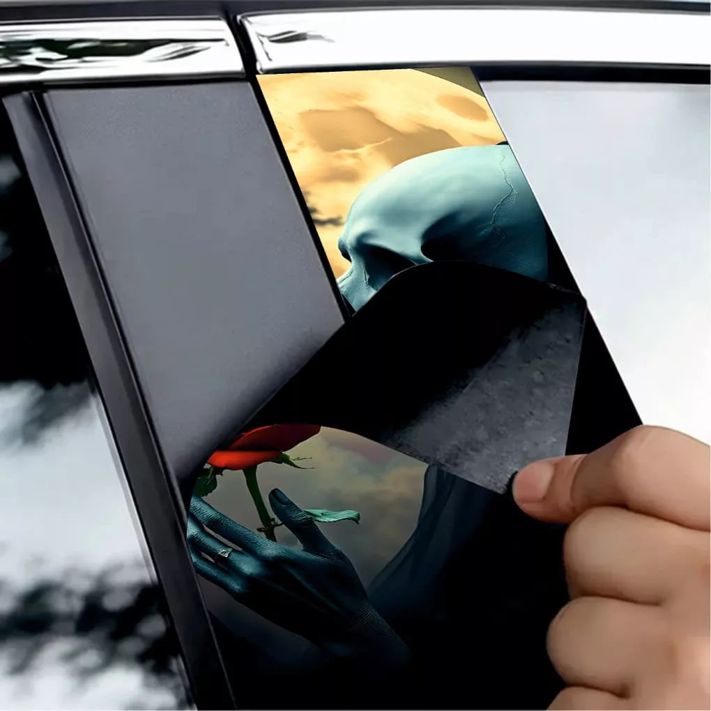 2 db kültéri nyomtatott fólia készlet autó ajtóoszlopainak ragasztásához. Az EcoSolvent Outdoorral nyomtatott fólia bármilyen sík, sima felületre tapad. Durva felületek esetén a termék tapadása jelentősen csökken.