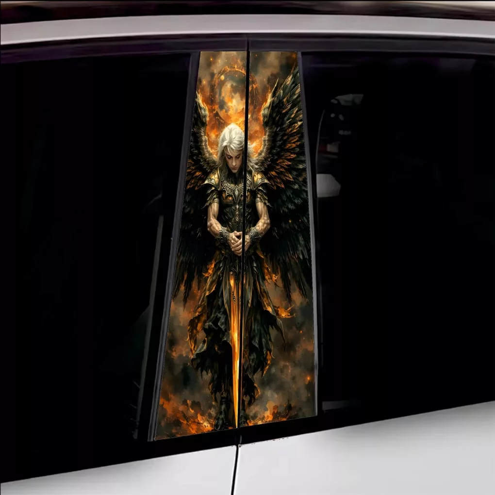 2 db kültéri nyomtatott fólia készlet autó ajtóoszlopainak ragasztásához. Az EcoSolvent Outdoorral nyomtatott fólia bármilyen sík, sima felületre tapad. Durva felületek esetén a termék tapadása jelentősen csökken.