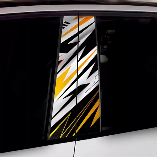 2 db kültéri nyomtatott fólia készlet autó ajtóoszlopainak ragasztásához. Az EcoSolvent Outdoorral nyomtatott fólia bármilyen sík, sima felületre tapad. Durva felületek esetén a termék tapadása jelentősen csökken.