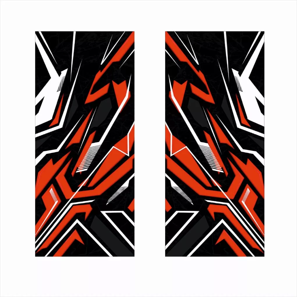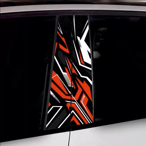 2 db kültéri nyomtatott fólia készlet autó ajtóoszlopainak ragasztásához. Az EcoSolvent Outdoorral nyomtatott fólia bármilyen sík, sima felületre tapad. Durva felületek esetén a termék tapadása jelentősen csökken.