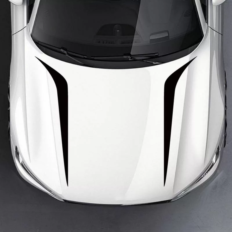 2 db-os öntapadós Tuning matrica szett, "Hood Stripes V2" modell, 100 x 26 cm méret, fekete szín