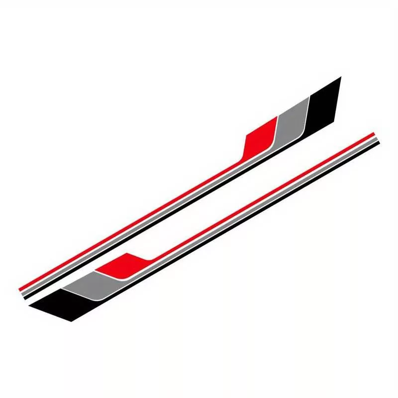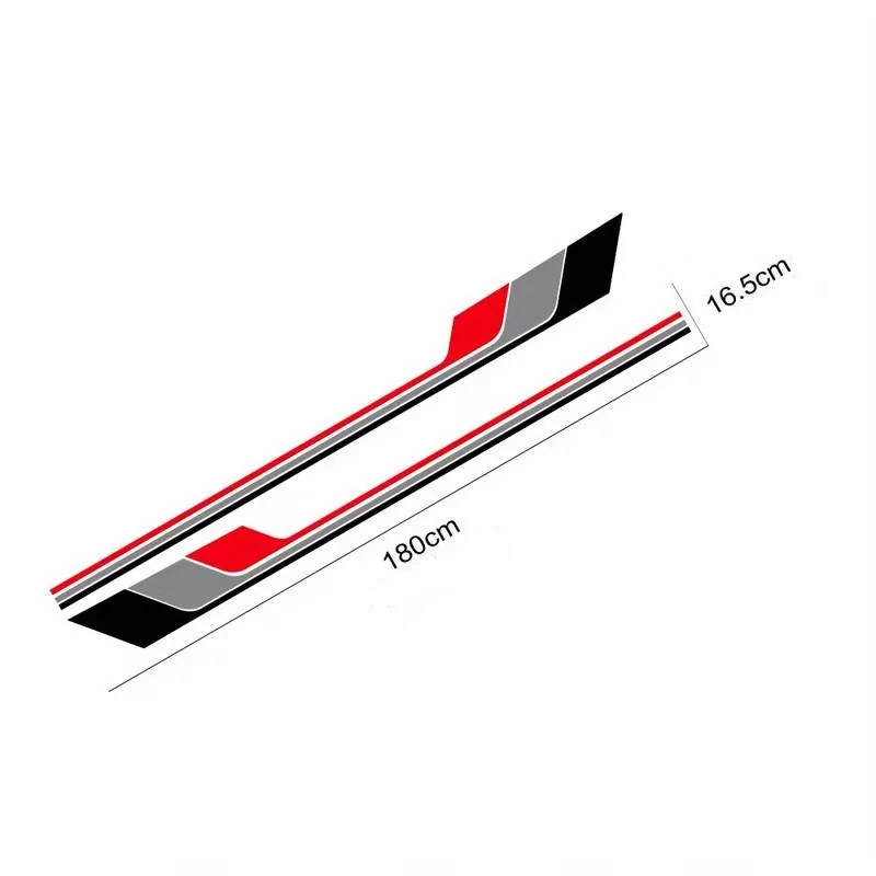 2 db-os öntapadós tuning matrica szett, "Racing Stripes V2" modell, 180 x 16,5 cm méret, fekete + szürke + piros szín