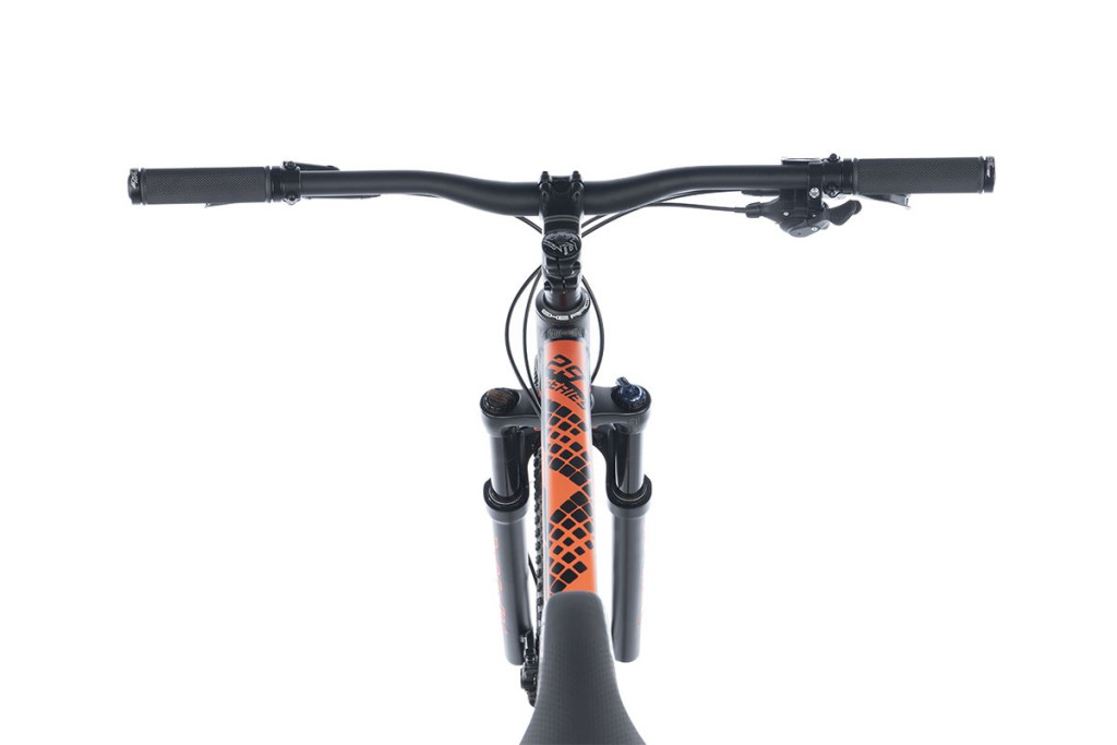 Hegyikerékpár, 18" váz, 29" kerékméret, 8 sebességes, ajánlott kerékpáros magasság 168-178 cm, 110 kg teherbírás, fekete-narancs színben.